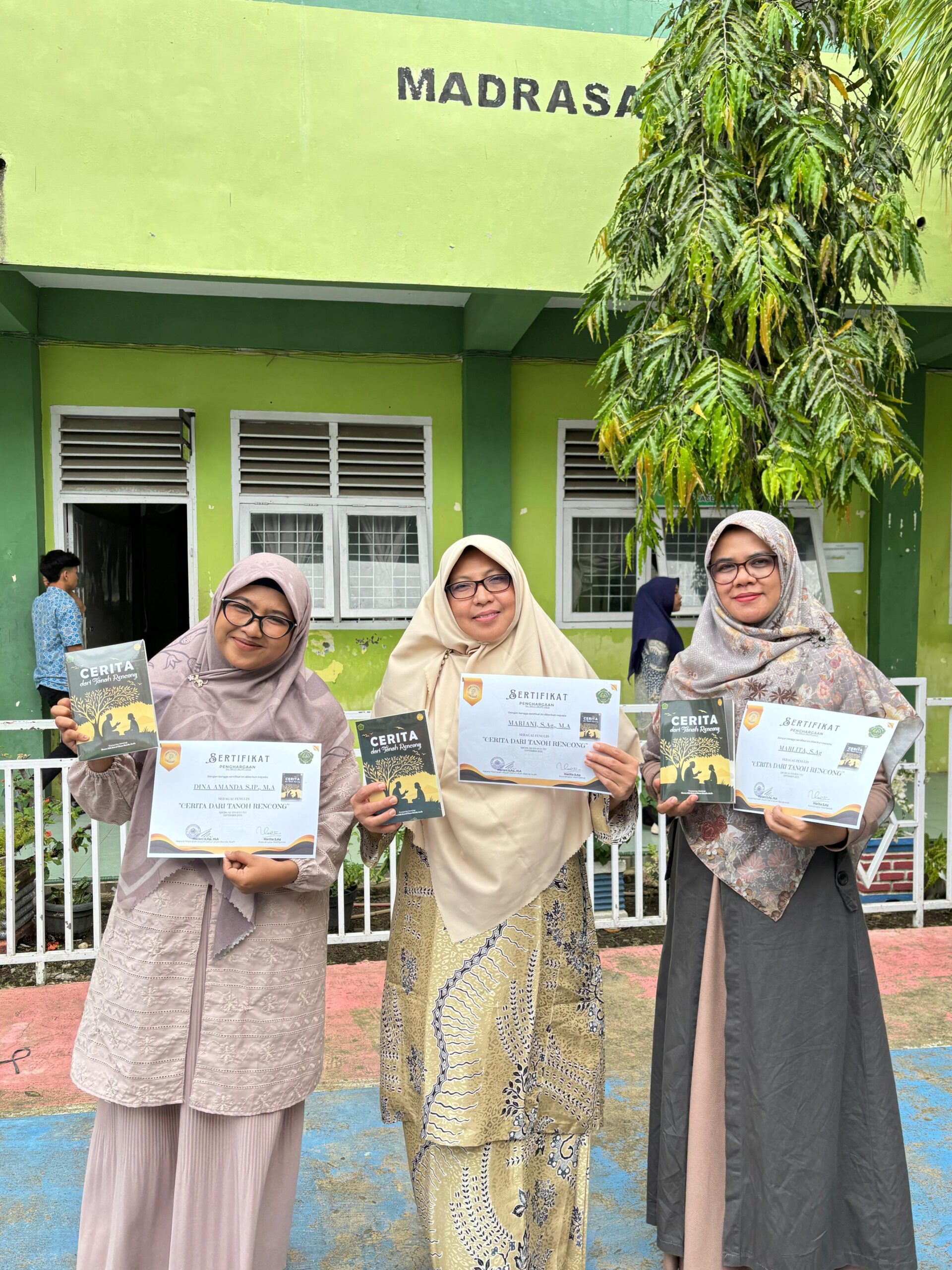 Sebagai bentuk apresiasi, pihak madrasah memberikan sertifikat penghargaan kepada seluruh penulis yang terlibat dalam proses penulisan dan penerbitan buku tersebut. Penyerahan sertifikat dilakukan secara simbolis di aula madrasah, disaksikan oleh dewan guru dan siswa.